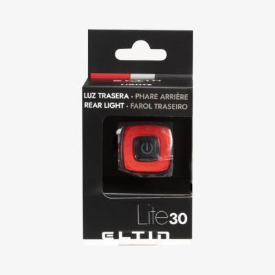 ELTIN LITE30 Rear Bike Light delivers 30-lumen output with three lighting modes. Features USB charging, quick-mount system, and extended battery life. Compact design with high visibility for urban and road cycling.