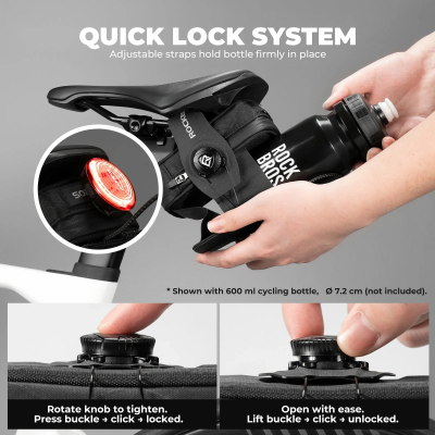 Twist-Lock Fit – dial tightens in seconds, releases just as fast; strap doubles as a bottle cage mount.