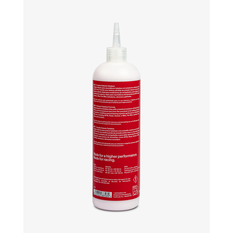 The Tubeless Sealant Formula High Pressure 500 mL is a specialist tubeless tyre sealant developed by grezzy+ to deliver rapid, long-lasting sealing performance in modern bike setups. Built around an advanced synthetic latex and high-tech polymer formula, this sealant is optimised to cope with higher tyre pressures (up to 6 bar / 87 psi) while still performing reliably in demanding conditions.